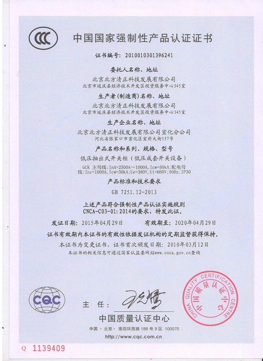 CCC認證證書